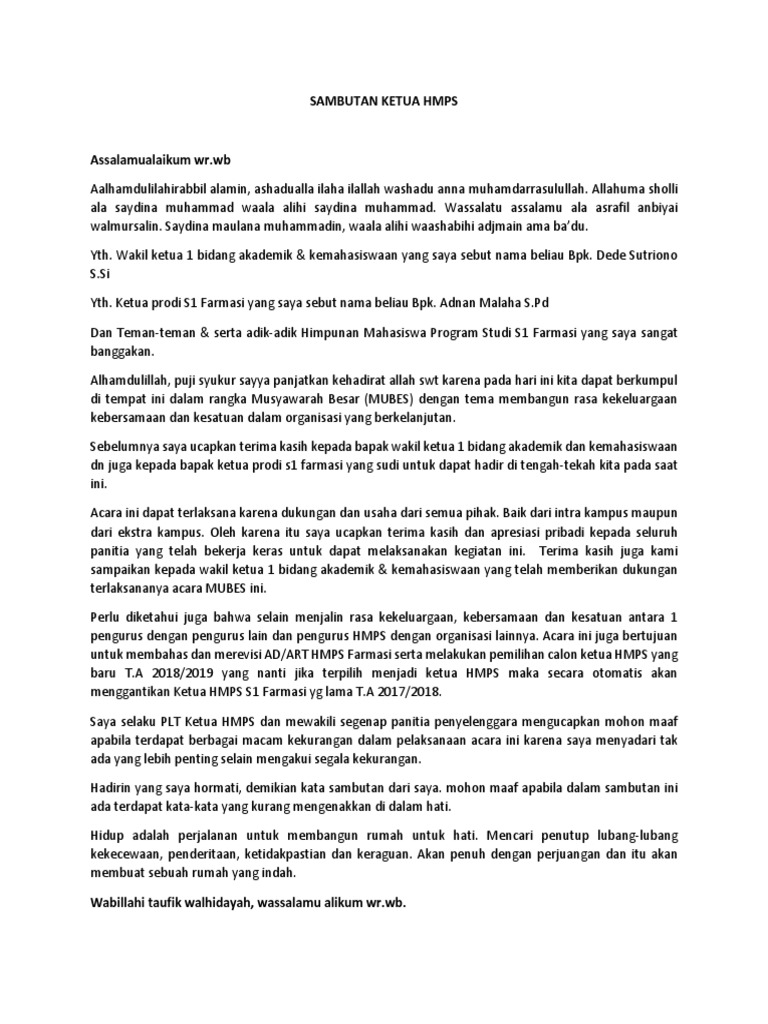 Savesave contoh sambutan ketua panitia pemilihan rt.docx for later. Banyak contoh naskah pidato sambutan ketua rt yang bisa dijadikan referensi sobat dalam membuat kata sambutan, namun kali ini tipstriksib akan berbagi tips cara membuat contoh naskah pidato kata sambutan acara syukuran singkat. Contoh naskah sambutan ketua pertemuan rutin pkk muda mudi. Contoh contoh praktis pembawa acara sambutan pidato dan doa. Contoh kata sambutan ketua panitia acara santunan anak yatim. Yang saya hormati tokoh masyarakat rt 08. Contoh kata sambutan tuan rumah. Pemilihan rt 09 rw 04. Langsung saja, berikut adalah contoh sambutan dari tuan rumah dalam acara yasinan. Yang saya hormati bapak ketua rw 05 dan bpk sekdes desa saga balaraja. Termasuk didalamnya pada acara resmi kampung semisal pengajian, rapat rt, rw ataupun kumpulan karang taruna, termasuk pengajian yasinan, untuk itu perlu sekiranya sedikit meluangkan waktu untuk. Boleh kok copy paste contoh mc ini. Assalamualaikum waramatullahi wabarakatuh wabilahitaufiq walhidayah wassalamualaikum warahmatullahi wabarakatuh.