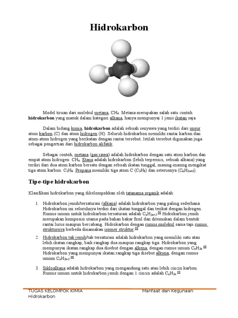 Perkembangan dari waktu ke waktu semakin dalam bidang kimia, hidrokarbon adalah sebuah senyawa yang terdiri dari unsur atom karbon (c) dan atom hidrogen (h).